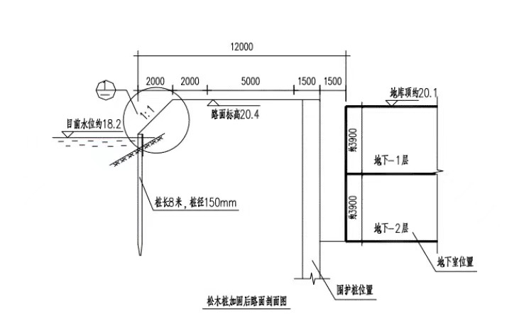 b、根據(jù)地勘資料顯示,樁端進(jìn)入10加標(biāo)高為粘土層,下層為含砂層,該層可作為松木樁持力層。